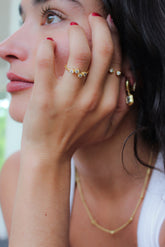This delicate cluster ring is perfect for everyday wear. Pair together with one or two of our Duo Tennis Rings to create the ultimate stacking set.