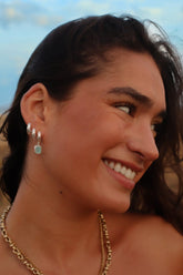 These compact hammered silver hoops are your new everyday essential. Designed for effortless wear, their subtle texture adds just the right amount of edge to any outfit. Perfect for layering with other earrings, or wearing solo for a minimalist look.