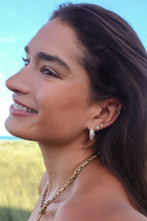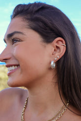 An essential staple earring, the Original Doughnut Hoops feature our signature hammered texture. Carved out inside for a lightweight feel, these chunky hoops offer all-day comfort without compromising on impact. Ideal for transitioning from the office to drinks. Available in one smaller, and two larger sizes in both gold & silver.