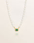 A timeless string of luminous freshwater pearls, accented with a green semi-precious stone at the centre. Finished with 18 carat gold detailing, this classic design pairs effortlessly with chunky chains or longer coin necklaces for a versatile, layered look.