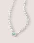Our Pearl Nugget Necklace combines freshwater pearls with textured silver nugget beads, finished with an Amazonite semi-precious stone at the centre. Designed for layering, wear it with our Tennis Necklace or one of our simple Silver Chains for a balanced, colourful stack.
