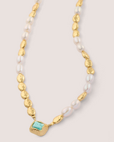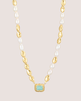 Featuring a striking Amazonite semi-precious stone, this modern pearl necklace is perfect for layering with a colourful Turquoise Tennis Necklace or Gold Chain Necklace.